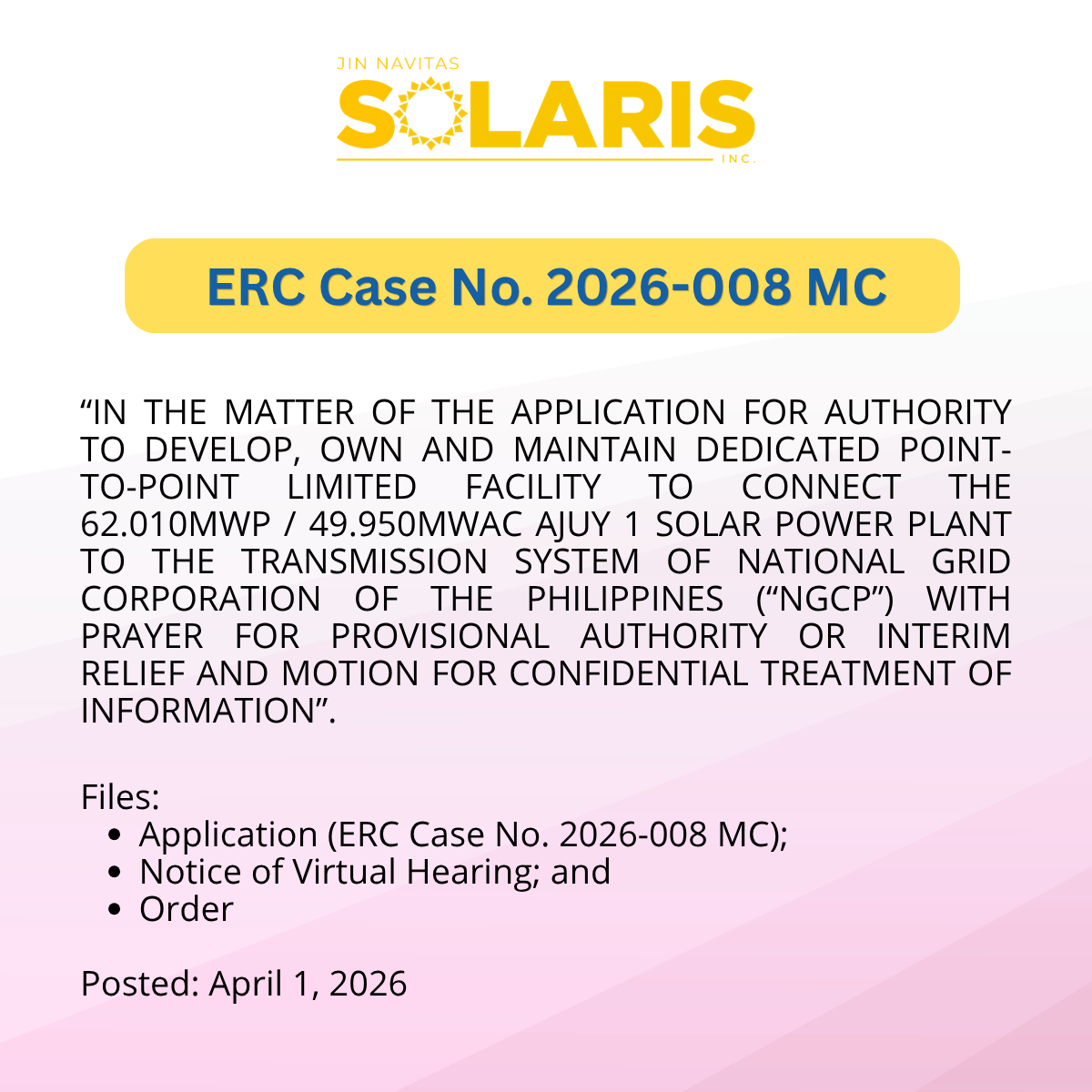 Bringing innovation in the growing solar market, Solaris’ kickoff project is the NING*NING Solar Rooftop Project in Naic, Cavite. Currently, Solaris also harnesses the sun’s power in the region of Visayas with its ground-mounted solar project in the Municipality of Ajuy in Iloilo.